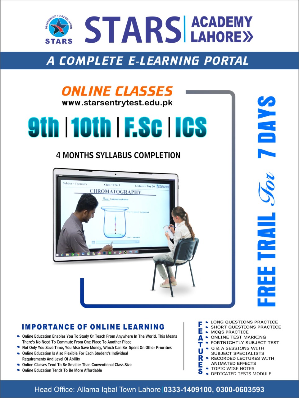 Stars academy Head office Allama Iqbal Town is serving the nation with firm foundations since 1991 under the supervision of our chairman Mian Muhammad Younis, having the vision ....